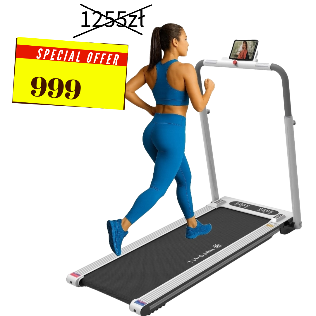 - Szybkie składanie i transport – idealna bieżnia do małych mieszkań